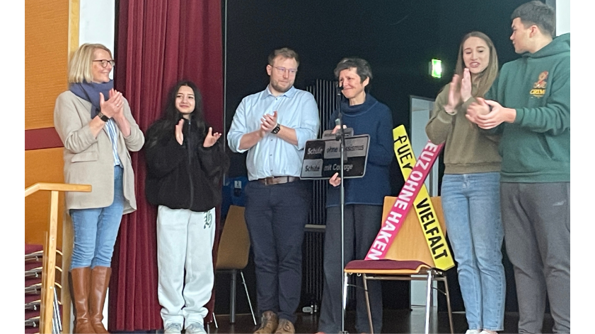 Unter der Schirmherrschaft unseres Bürgermeisters, Herrn Dominik Petters, wuden wir Mitglied im oben genannten Netzwerk „Schule ohne Rassismuss“ und verpflichten uns als Schulgemeinschaft, aktiv gegen Rassismus, Ausgrenzung und Diskriminierung und für Toleranz, Akzeptanz und Verständigung einzusetzen.